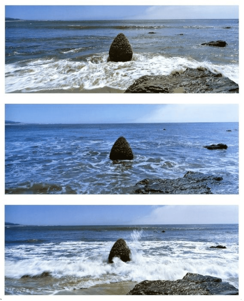 Imagine the time taken to find leaves of exactly the right size, shape, vibrance, and strength, in addition to piecing them together into this meaningful form – whilst being conscious that all these efforts might, at the slightest breeze, float away in an instant. These natural inevitabilities do not deter him, though. By not relenting to nature’s constantly changing state, but accepting it for what it is, Goldsworthy makes what is – his.