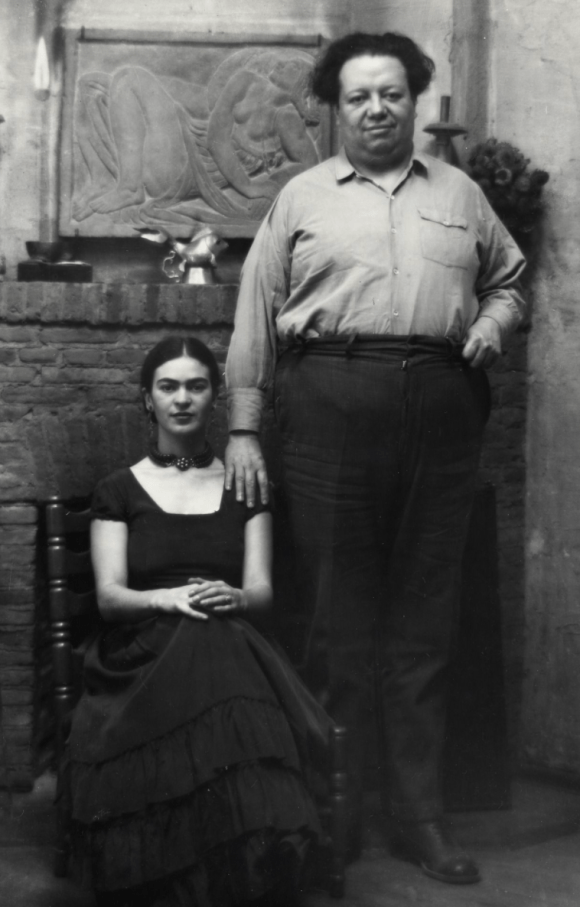 Empire State Building in a Volcano (detail from What the Water Gave Me) and Frida Kahlo with her husband Diego Rivera.